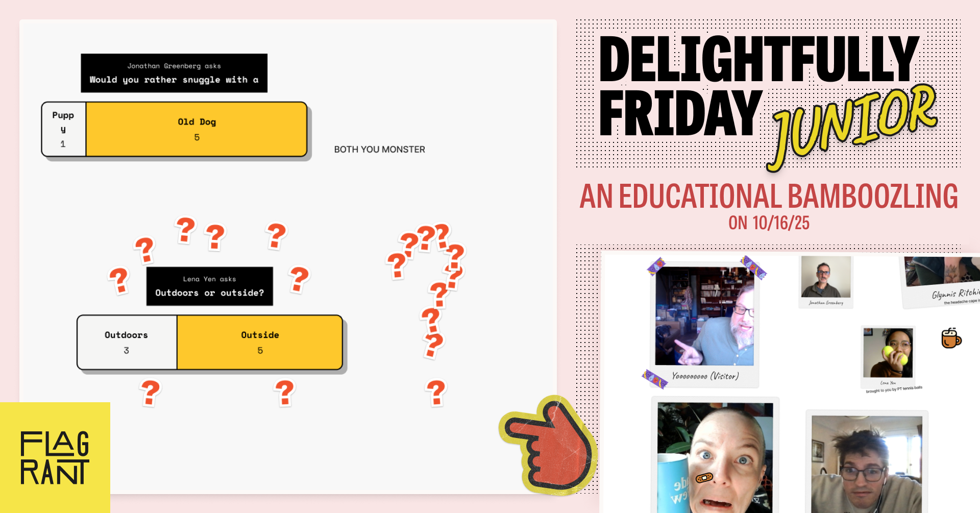 What’s Delightfully Friday Junior, you ask? This is only our second go-round (see our first take—show and tell—here), so you’re forgiven for not knowing. At Flagrant we have different themes to our daily stand-ups, each one focusing on a different vibe, prompt, or mini team-building moment...